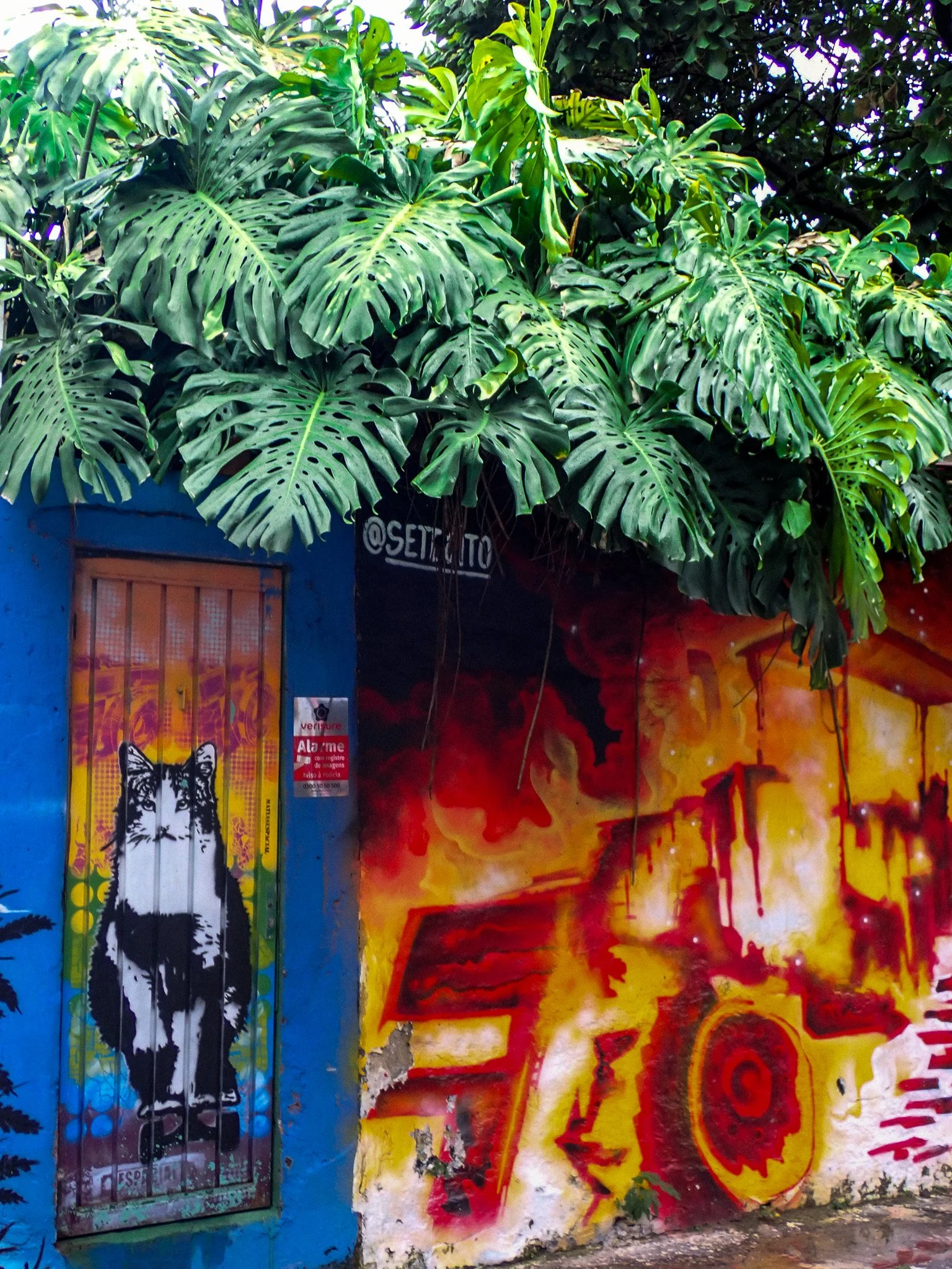I went out for a stroll of the neighborhood I’m staying in to hit up tourist attraction #1, Beco de Batman. This is essentially an alley full of murals, graffiti, and some street vendors. The name is based on one of the first murals there, that featured the (bat)man himself, Batman. It was nice to go right after the storm, the lush smell of trees and sopping flowers heavy in the air.